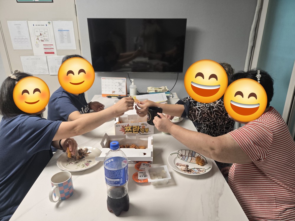 2025년 9월 성과보고회후 치킨과 콜라를 맛있게 냠냠!
